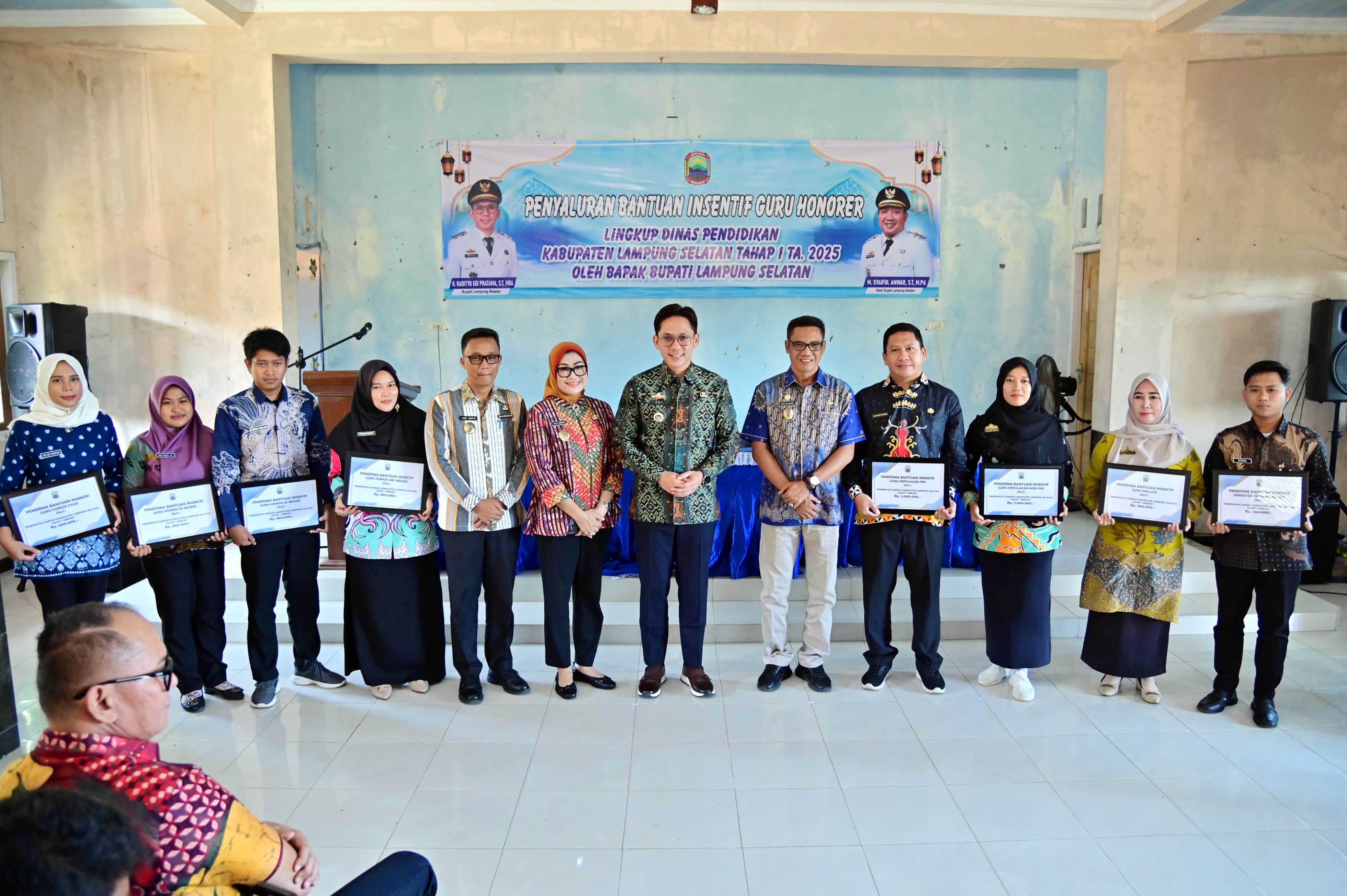 Secara simbolis, insentif periode Januari-Februari tahun 2025, diserahkan Bupati Lampung Selatan, Radityo Egi Pratama (Egi) kepada perwakilan