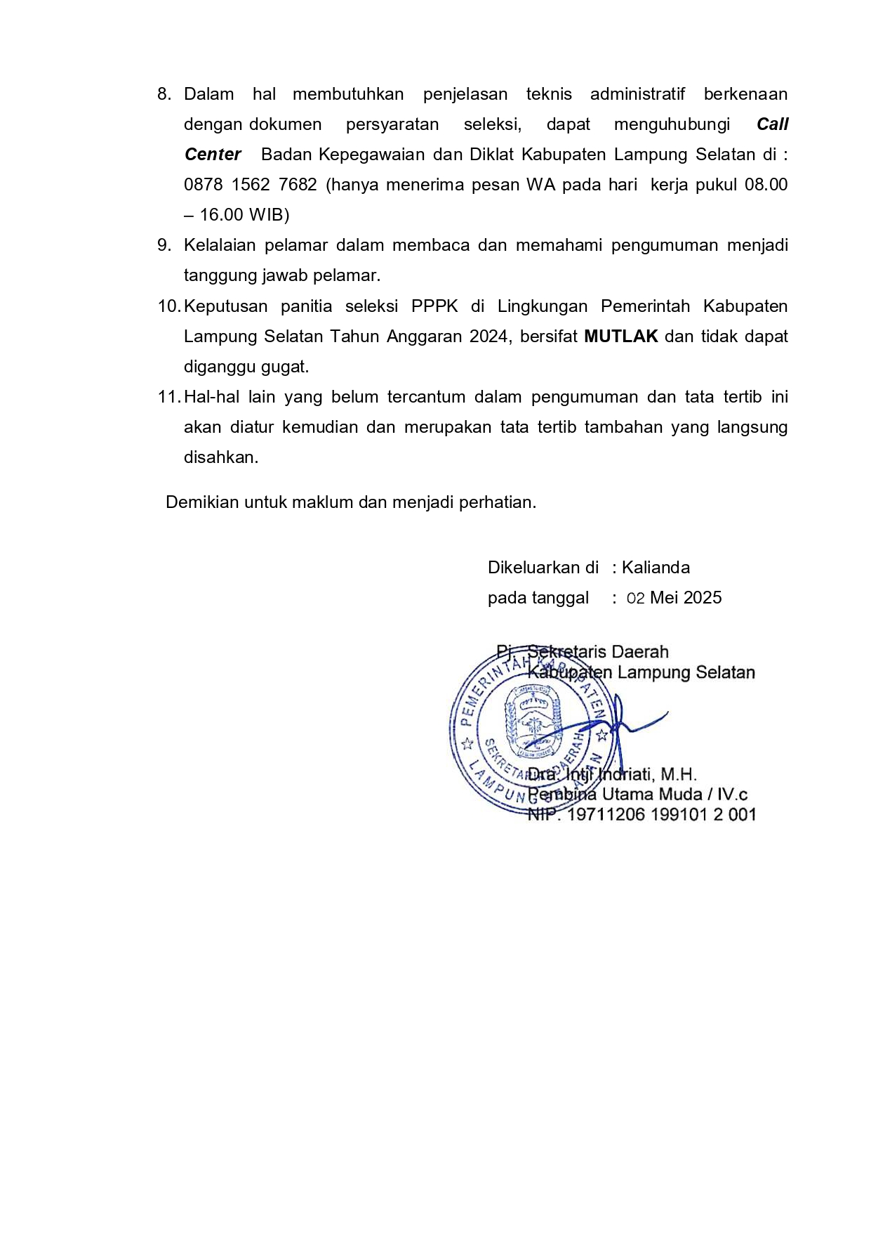 Download Pengumuman Selengkapnya: