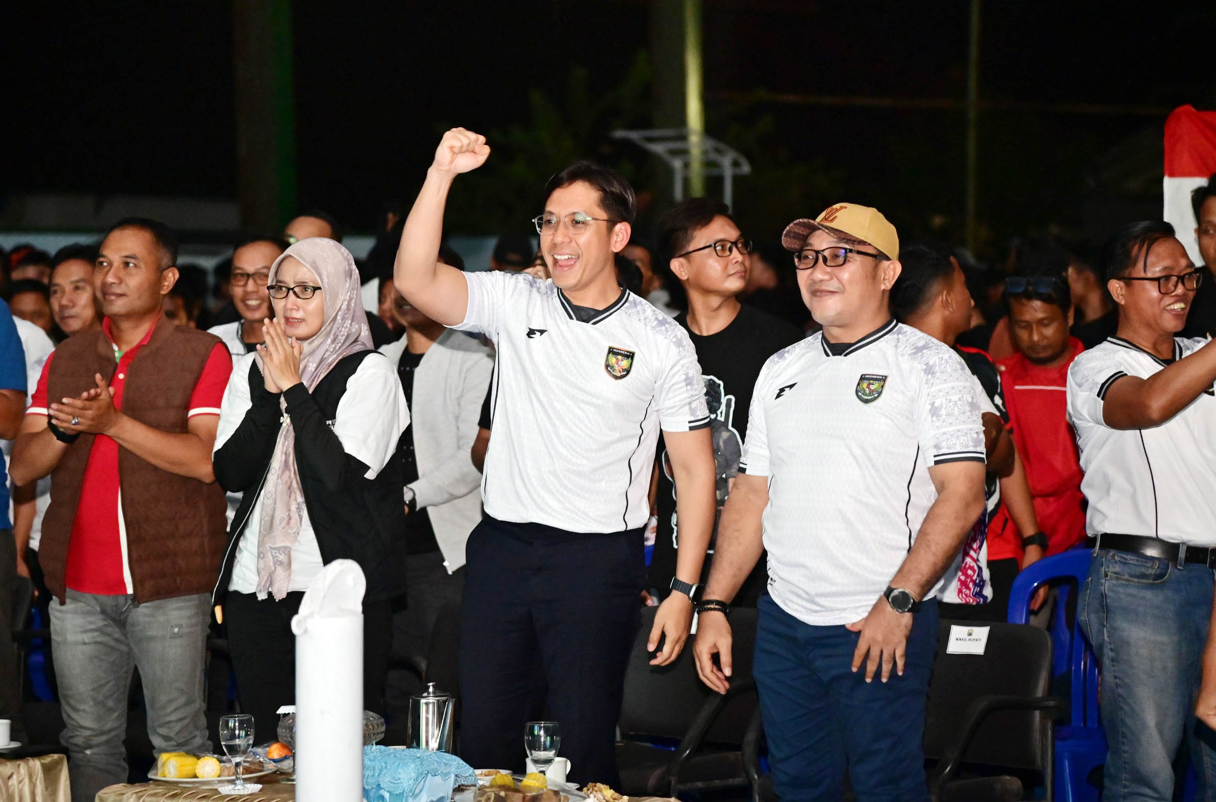 Bupati Lampung Selatan Radityo Egi Pratama, bersama Wakil Bupati, M. Syaiful Anwar, jajaran Forkopimda serta jajaran pejabat Pemkab Lampung Selatan, turut larut dalam atmosfer yang penuh semangat nasionalisme sejak pertandingan dimulai.