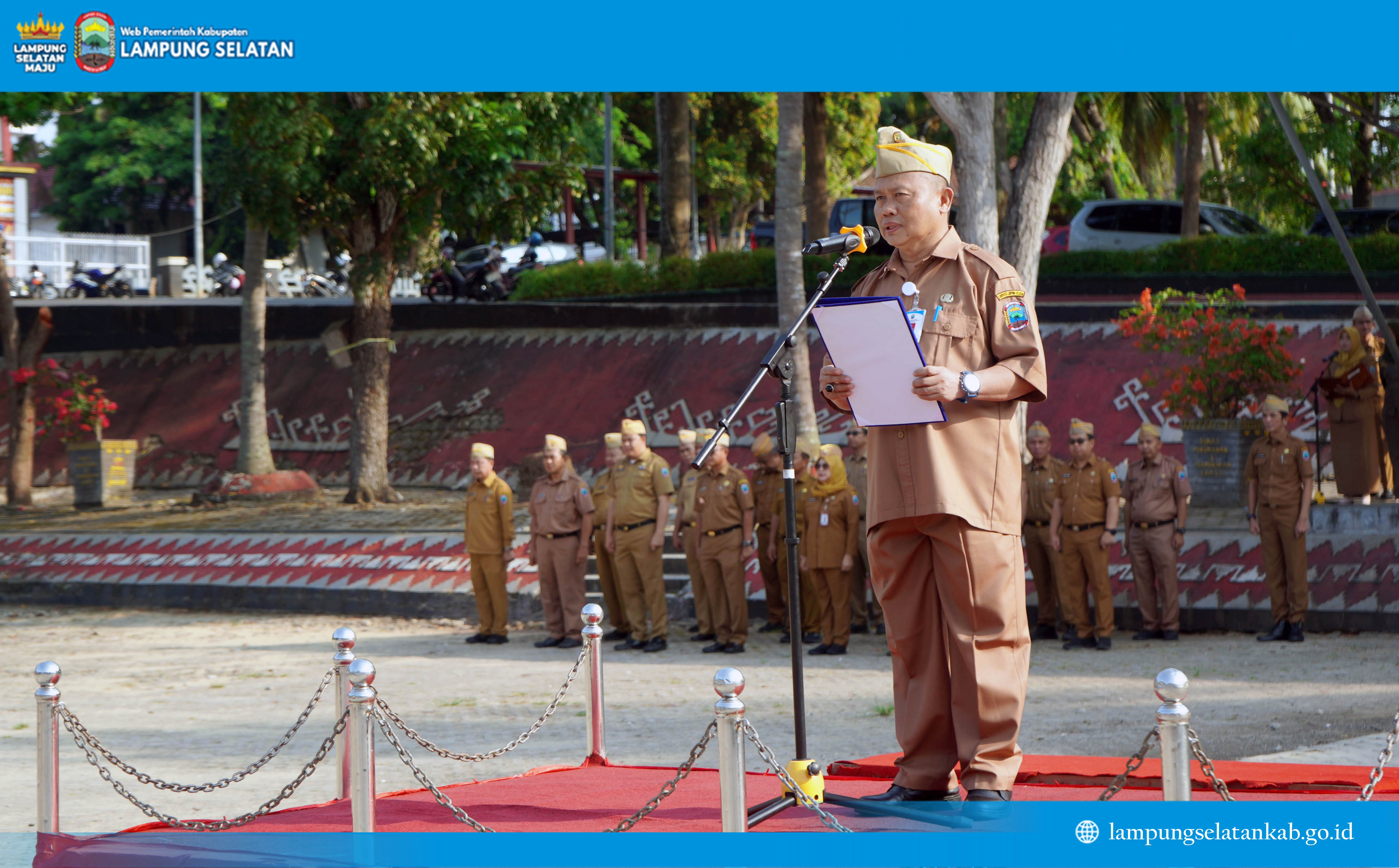 saat memimpin apel mingguan di Lapangan Korpri, Kalianda, Senin (20/10/2025).