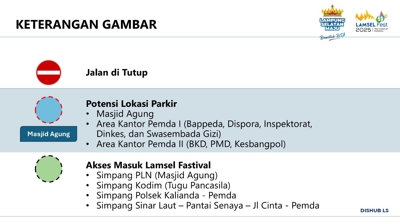 “Mari bersama menyukseskan Lamsel Fest 2025 dengan tertib berlalu lintas dan menjaga kenyamanan bersama,” demikian ajakan dari panitia pelaksana festival bertema The Crown of Krakatoa tersebut. (Kmf)